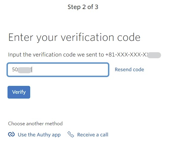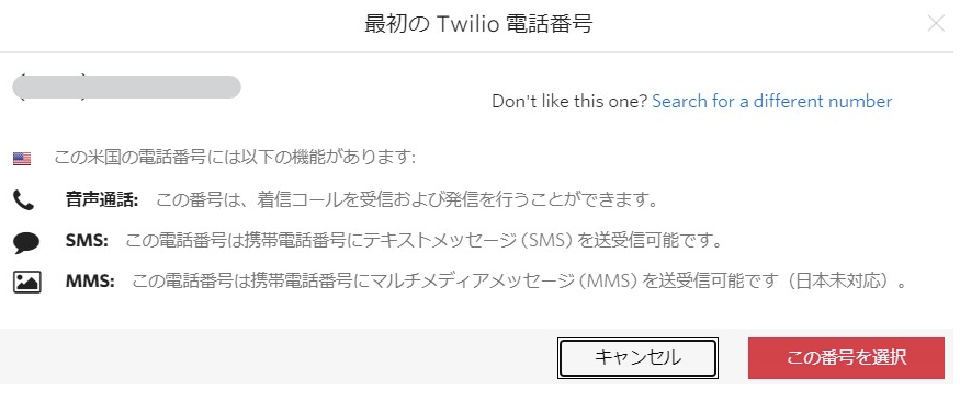 表示された番号は米国の番号ですが、日本の番号にSMS送信を試すだけなので問題ありません。この番号を選択します。