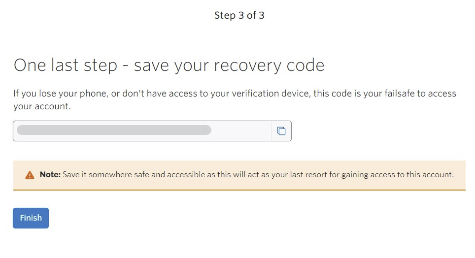 万が一のときのためのリカバリーコードが表示されるので大切に保管します。