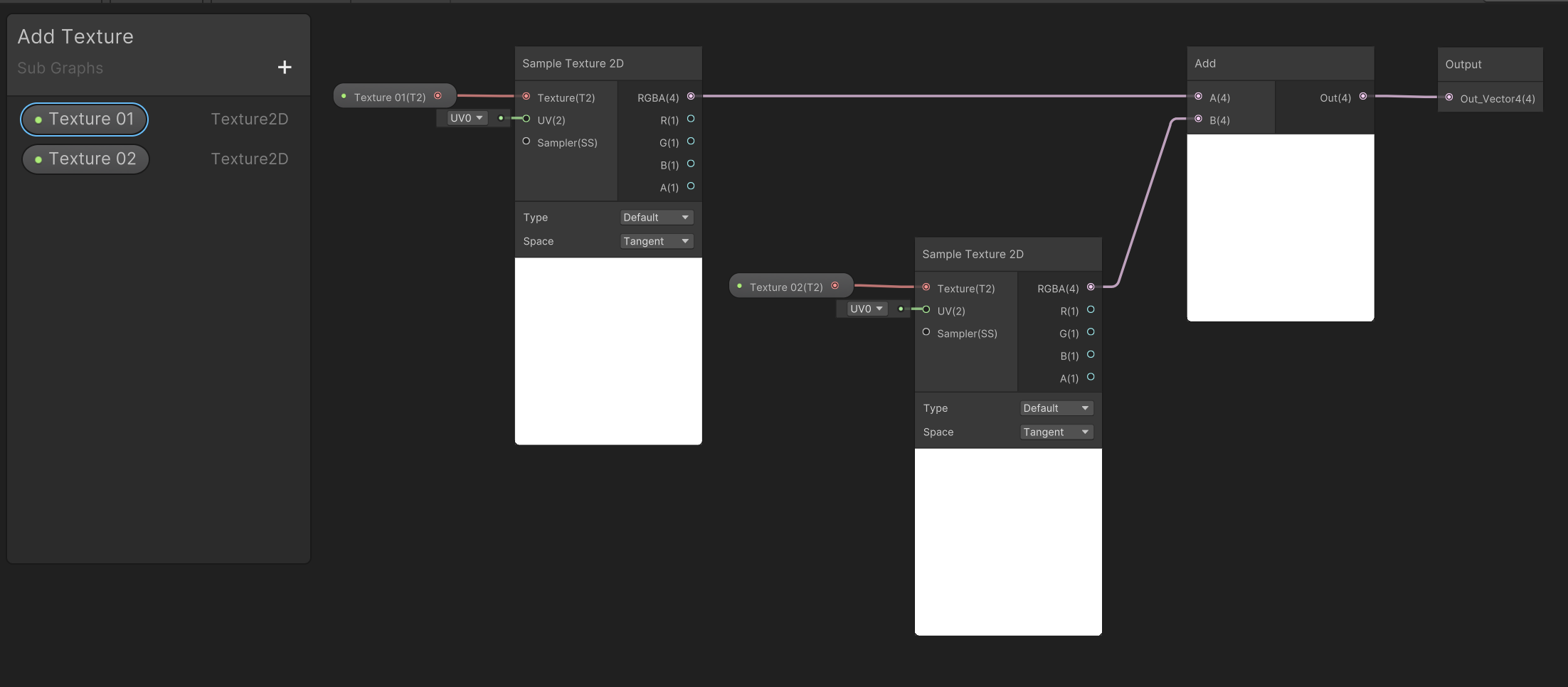 例えば、以下のような形式でテクスチャ同士を加算する Sub Graph を作成できる