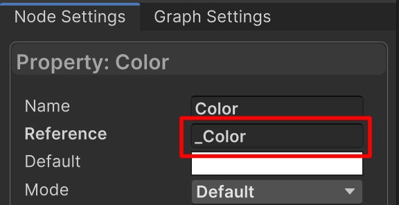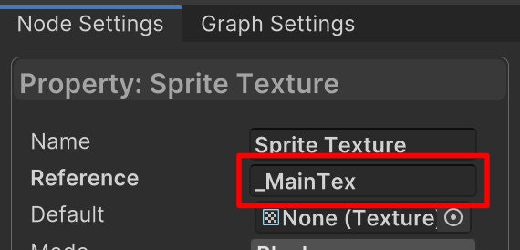 作成したパラメータを選択し、グラフインスペクタから Reference を「_MainTex」に変更し、あとは任意のパラメータを設定する(こうすることで、Image コンポーネントの Source Image で設定したテクスチャを受け取ることができる)。