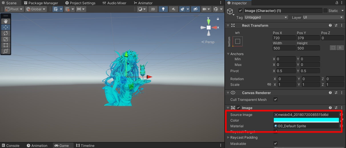 この状態で保存し、実際に Image コンポーネントの Source Image と、Color を変更すると、それらが反映されることを確認できる。