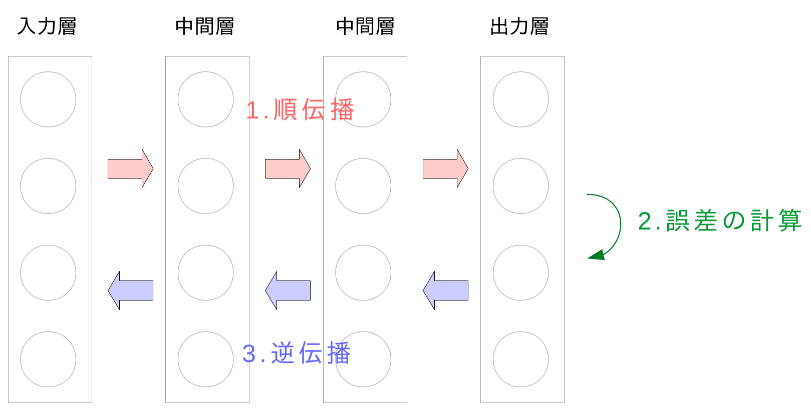 誤差逆伝播法の一般式を直ちに導くのは難しいため,3つのステップを踏んでいます.