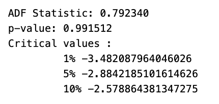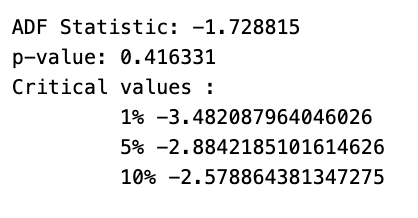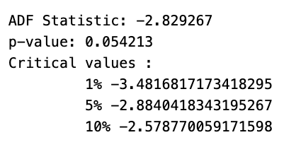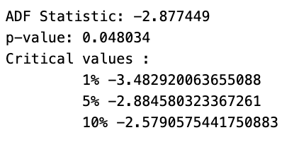 右端の対数差分系列であれば、p値が0.048 (4.8%)でHo (帰無仮説)が棄却される