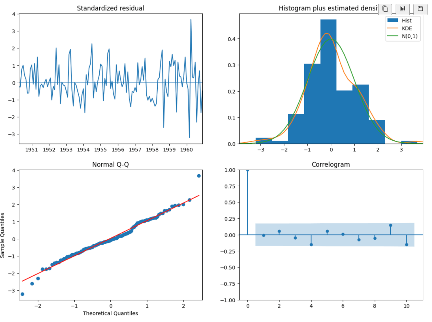 - 残差はホワイトノイズに近く見えるが、一部外れ値がある