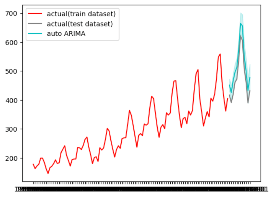 SARIMAモデルのパラメータは、AICが最小化されるように自動判定する