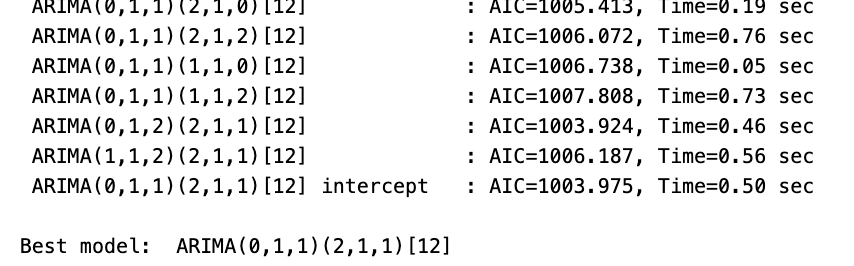 SARIMA(0,1,1)(2,1,1)[12]がベストと判定された