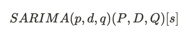 一周期がsであるデータにおいて、(月単位ならs=12)ARIMAの次数(p,d,q)及び、季節性の次数(P,D,Q)を指定する
