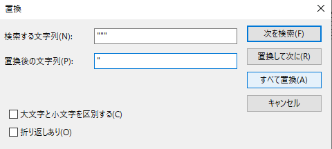 このまま格納するとダブルクォーテーションが付いた状態で文字列が格納されてしまうので、メモ帳で編集します。