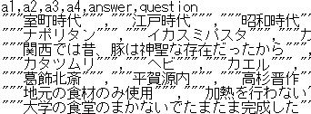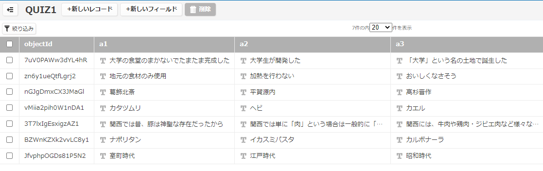 こんな感じで格納されます。これをクイズとして呼び出せば完成ですね。