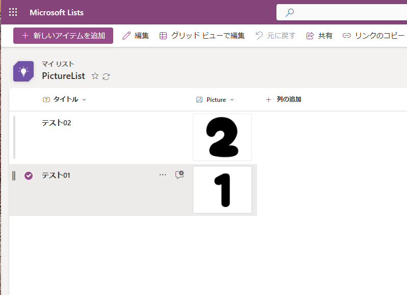 Picture(画像型) - タイトル(既存列:1行テキスト)