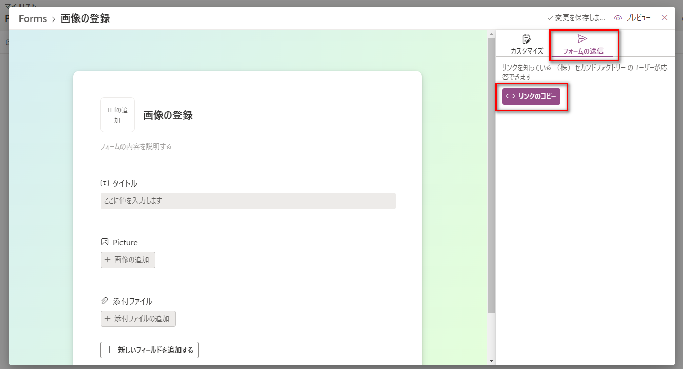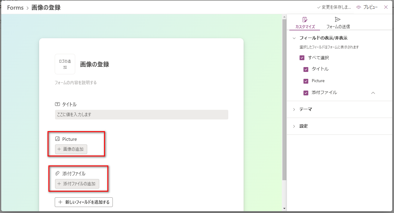 - 画像列や添付ファイル列への対応 :Lists の Forms 機能では、画像や添付ファイルを保存する機能がなく、ファイルを Lists に保存したい場合は従来通り Power Automate を使う必要がありました。