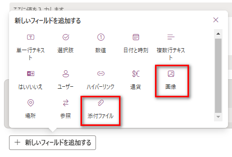 ところが先週 2024/12/11、Microsoft Lists を確認したところ、なんと 画像列や添付ファイル列 が利用可能になっていました