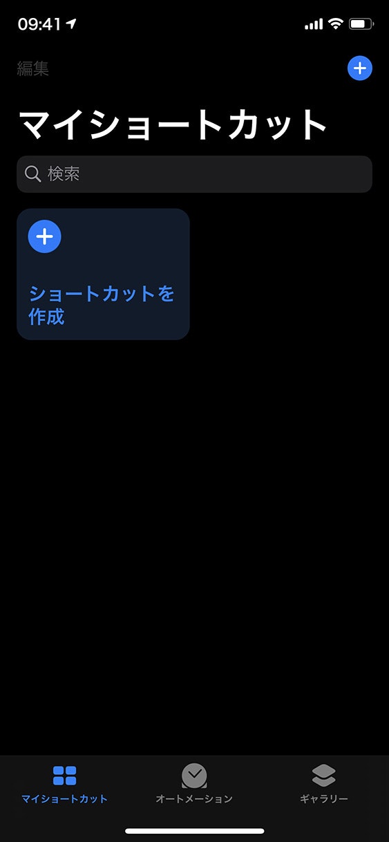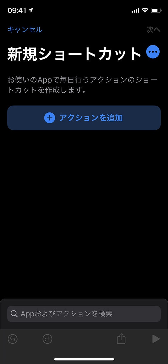 5、マイショートカットで、「ショートカットを作成」をタップしてください。「新規ショートカット」が表示されます。