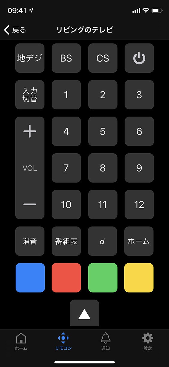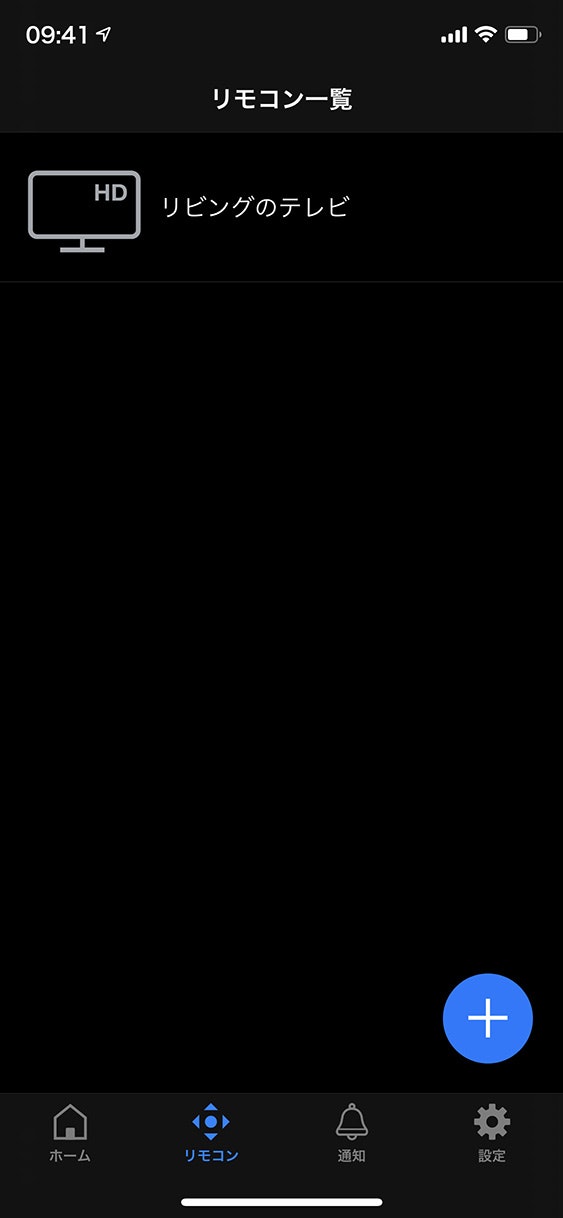 この「リビングのテレビ」を選択して、TVリモコン画面を表示します。