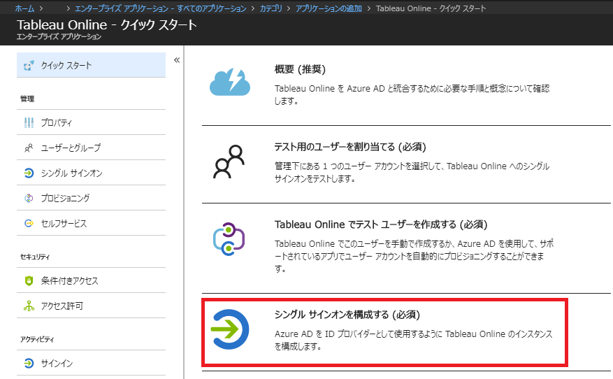 Microsoft 社ドキュメント チュートリアル: Azure Active Directory と Tableau Online の統合