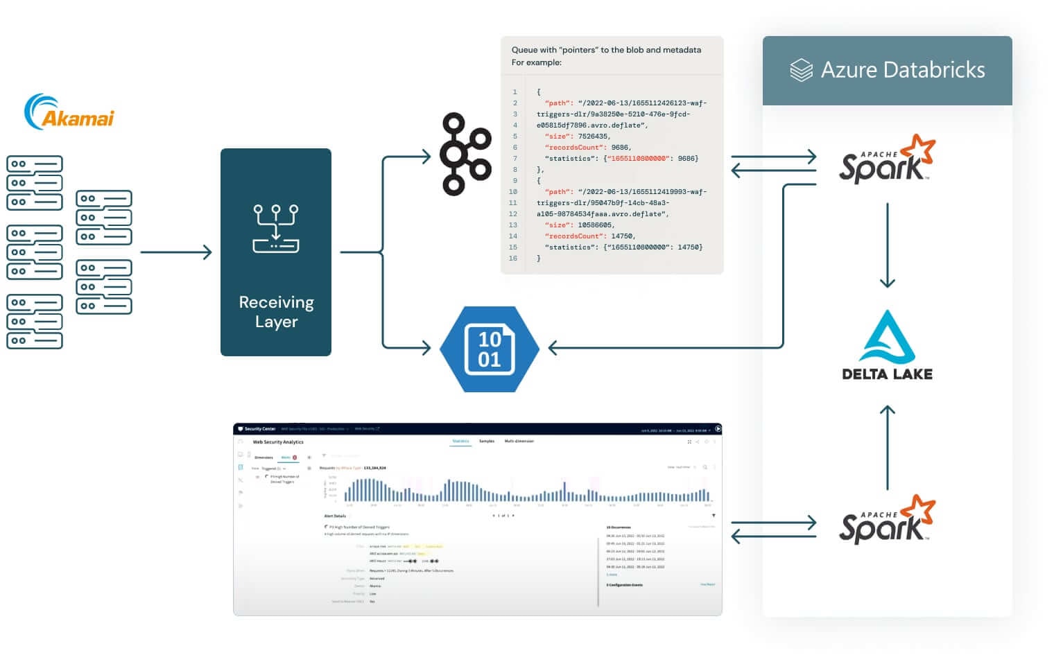 Akamaiは、広く普及している高度に分散されたコンテントデリバリーネットワーク(CDN)を運用しています。このCDNは、メディア、コマース、金融、小売など多数の業界の大企業のいくつかにインターネットトラフィックをルーティングするために、世界中で135ヶ国、1,300以上のネットワークにある約345,000のサーバーを使用しています。インターネットトラフィックの約30%はAkamaiサーバーを経由しています。また、Akamaiはクラウドセキュリティソリューションを提供しています。2018年、この会社は、広範なストリーミングセキュリティイベントを評価し、それらのイベントの分析を行う、単一かつ統合されたインタフェースをAkamaiの顧客に提供するウェブセキュリティ分析ツールを立ち上げました。このウェブ分析ツールによって、Akamaiの顧客はリアルタイムでセキュリティイベントに関連する情報を得た上で悪所の取れるようになります。Akamaiはこのウェブ分析ツールでDelta LakeとDatabricksレイクハウスプラットフォームを活用することで、膨大な量のデータのストリームを可能とし、厳格なSLAを達成し、顧客に提供できるようになっています。