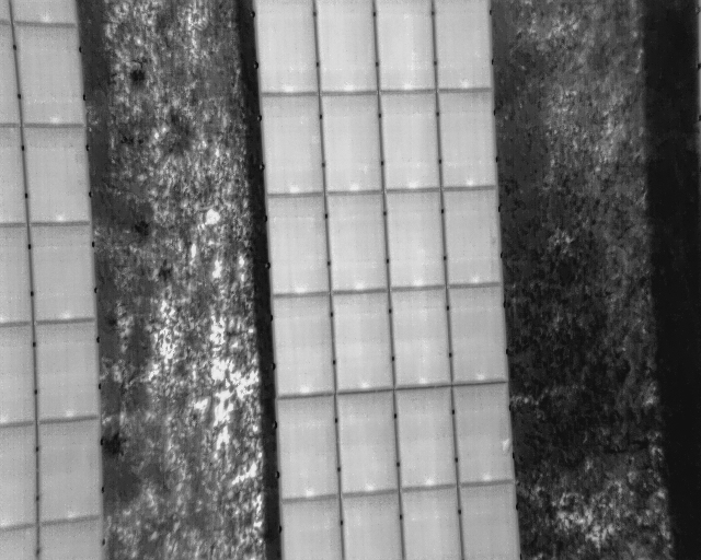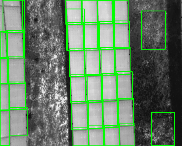 します。我々のトレーニングデータは、約200の太陽光パネルの画像から構成されています。さらに、メタデータは太陽光パネルの位置('境界ボックス')とそれぞれの太陽光パネルの状態をラベル付けしています。