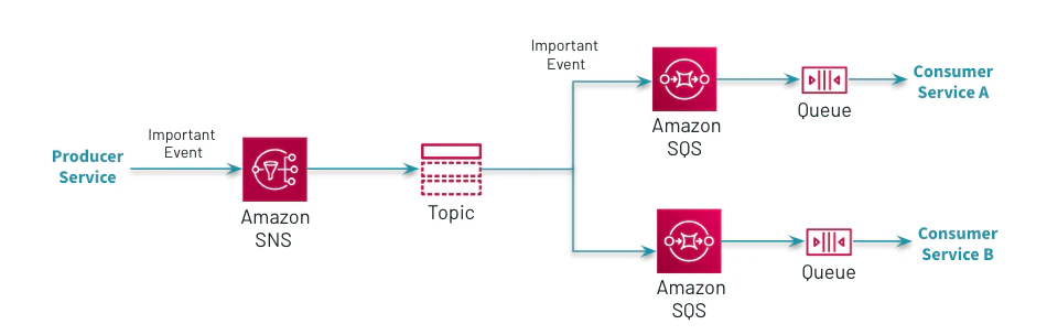 図8. Amazon SNSとAmazon SQSを用いたマイクロサービスの統合