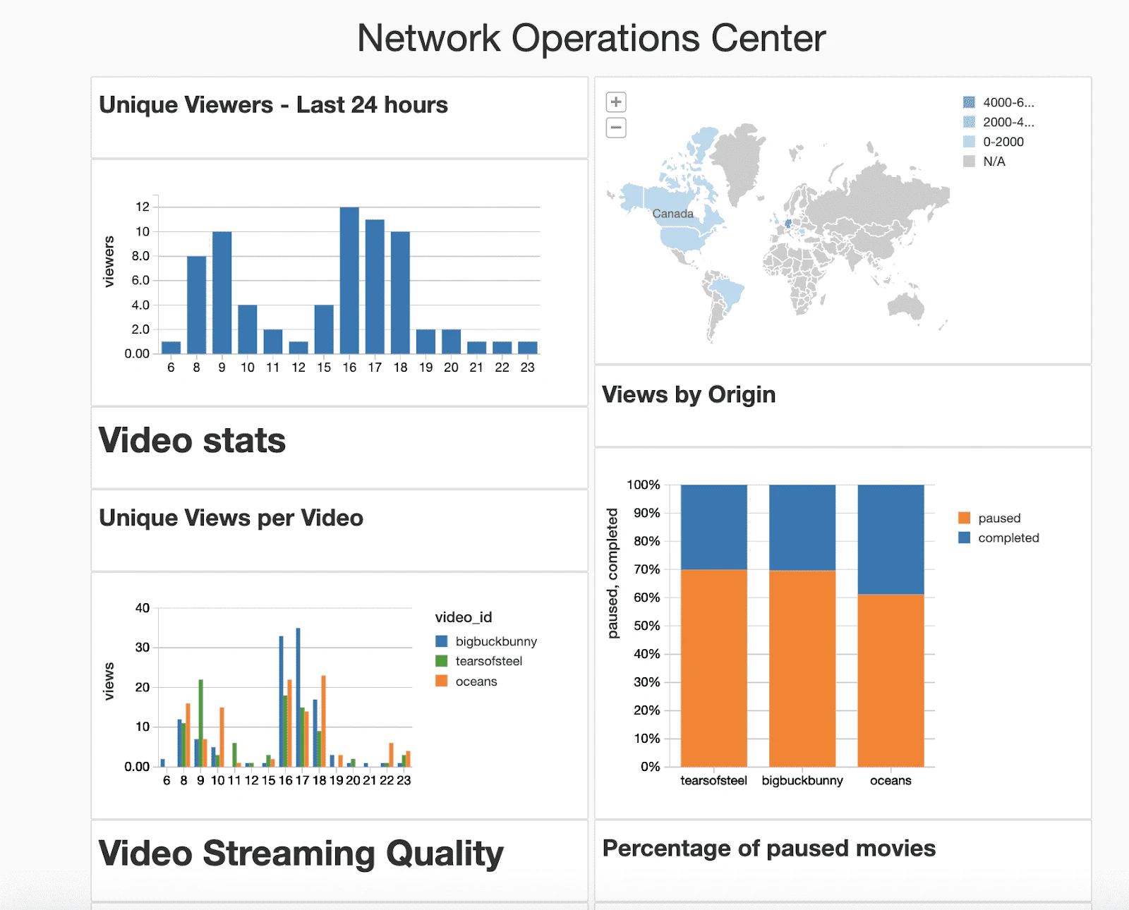 ストリーミング会社は、地理、デバイス、ネットワーク、現在、過去の視聴行動などの新たなセグメントを容易に定義し、セグメントレベルに抽象化する能力を用いて、個人レベルまでトラッキングすることで、可能な限りニアリアルタイムでネットワークのパフォーマンスとユーザー体験をモニタリングする必要があります。マクロレベルでユーザーのストリーミング体験の健康状態をモニタリングし、問題を早期に検知し、対応するために、ストリーミング会社は通信ネットワークからネットワークオペレーションセンター(NOC)の概念を導入しました。最も基本的なところでは、プロダクトチームが迅速かつ容易にサービスの異常を検知、対応できるようにするために、NOCはパフォーマンスのベースラインと現在のユーザーエクスペリエンスを比較できるダッシュボードを提供すべきです。