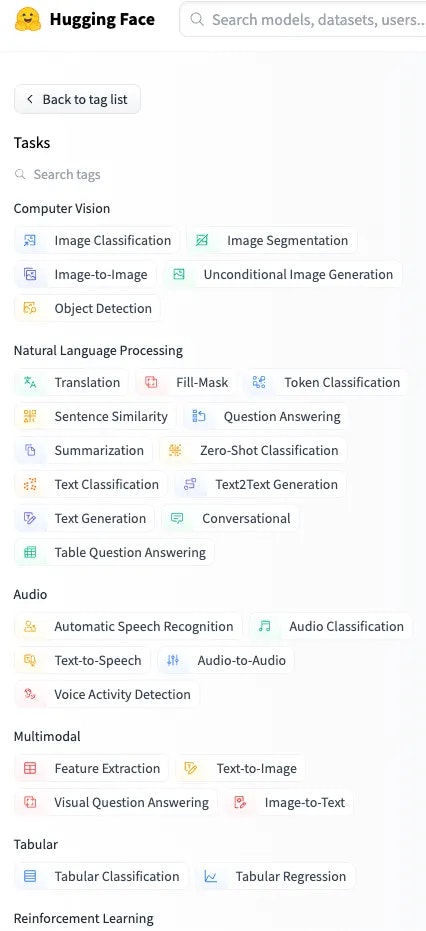 Huggingfaceで利用できるモデルの機械学習タスクタイプ