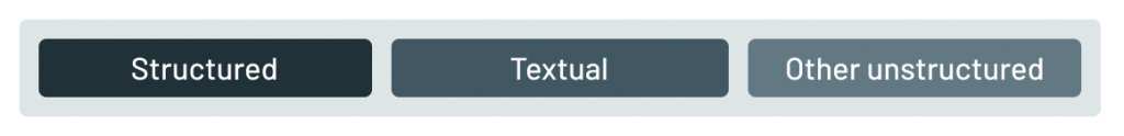多くのケースで、データウェアハウスが重要かつ有用であるのは、データウェアハウスが構造化データ向けに設計されているからです。しかし、今では企業には他のデータタイプが数多く存在しています。企業にどのようなデータが存在しているのかを見るために、簡単な図を示します。