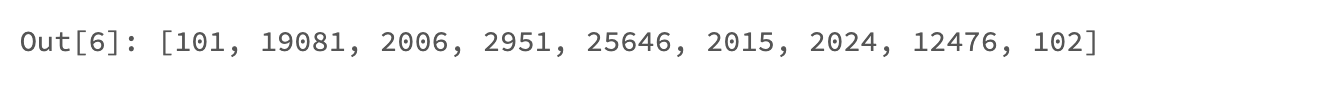 トークン化されたシーケンスは、BERTのボキャブラリーや特殊なトークンにマッピングし直すことができるトークンIDのリストを生成します。