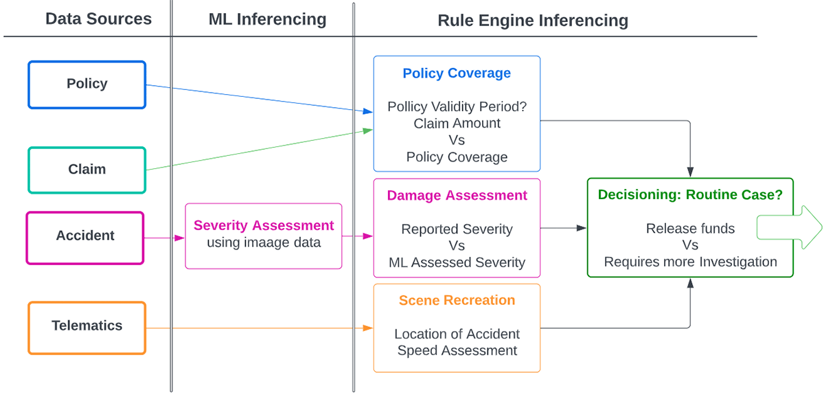 一方、ルールエンジンは、人間のインタラクションを必要とすることなしに自動化、適用できる既知のオペレーション上の特性や統計的なチェックを定義するための柔軟な手段を提供します。データが事前に定義された期待値に合致しない場合には、フラグが立てられ人間のレビューや調査に転送されます。このようなアプローチとMLベースのワークフローを組み合わせることで、さらなる洞察を導き出し、フラグが立てられたケースを分析、レビューするのにクレーム調査官が必要とする時間を劇的に削減します。