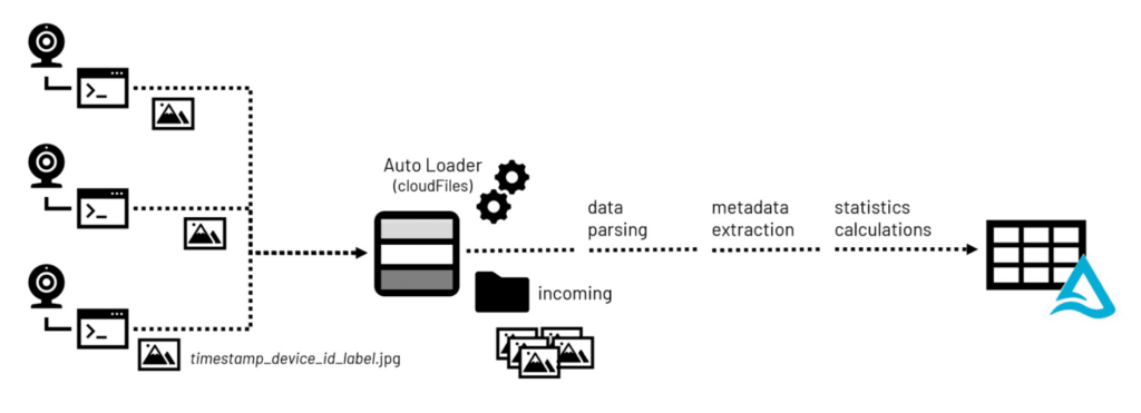 画像ライブラリを構築する際、コンピュータービジョンアプリケーションに蓄積された数百万の画像をデータサイエンティストが検索を行う際に有用な画像の統計情報、メタデータは、レイクハウスのストレージに画像が到着した際に処理されます。Pillowのような一般的なオープンソースライブラリを活用することで、メタデータ、統計情報の両方が抽出され、容易に検索できるようにレイクハウス環境のテーブルに永続化されます。画像を構成するバイナリーデータもまた、これらのテーブルにオリジナルファイルへのパス情報と共に永続化することも可能です。