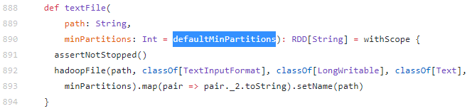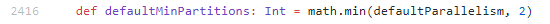 SparkContext.textfileからテキストファイルを読み込む場合、パーティションの数は数式min(2, spark.default.parallelism)から計算されます