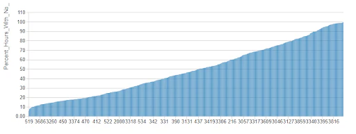 時間別に集計すると、ニューヨークはまさに眠らない街であることがわかります。実際には、自転車がレンタルされていない時間の割合の多いステーションは多く存在しています。