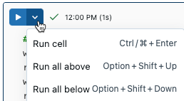 ノートブックセルでコードを実行するには、コードを入力して、セルの左上にある実行ボタンをクリックするか、Cmd + Enterを使用します。