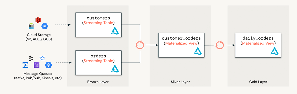 AWSとAzureのDatabricks SQLでマテリアライズドビューとストリーミングテーブルが利用できるようになることを発表できて嬉しく思っています。ストリーミングテーブルは、クラウドストレージやメッセージキューからのインクリメンタルな取り込みを提供します。マテリアライズドビューは、新規データの到着に合わせて自動かつインクリメンタルに更新されます。これらの2つの機能を組み合わせることで、ビジネスに新鮮なデータをセットアップし、提供することをシンプルにするインフラストラクチャ不要のデータパイプラインを実現します。この記事では、データウェアハウスでアナリストや分析エンジニアたちがデータや分析アプリケーションをより効果的にデリバリーするために、これらの新機能がどのような助けになるのかを探索します。