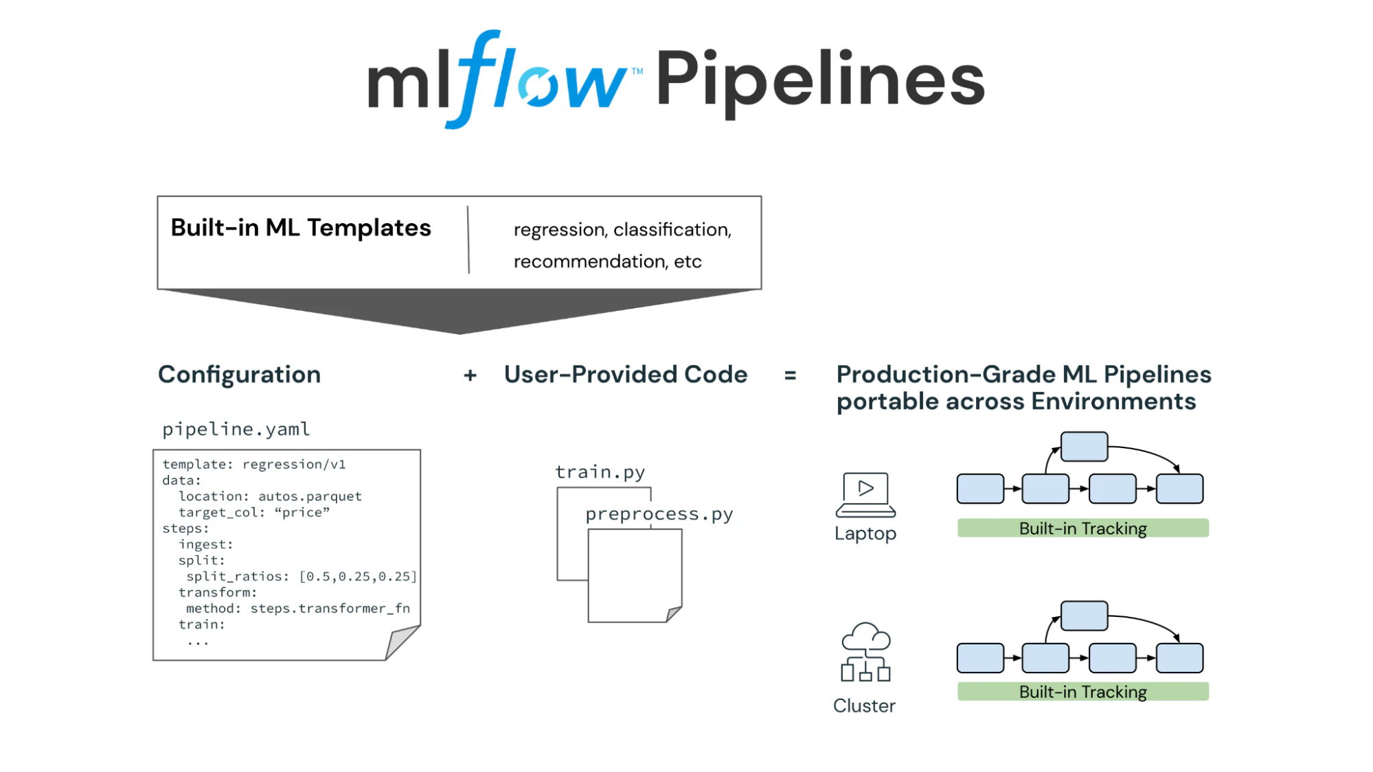 MLflow 2.0ではMLを加速するための事前定義済み、プロダクションレディのテンプレートであるMLflow Pipelinesが導入されます