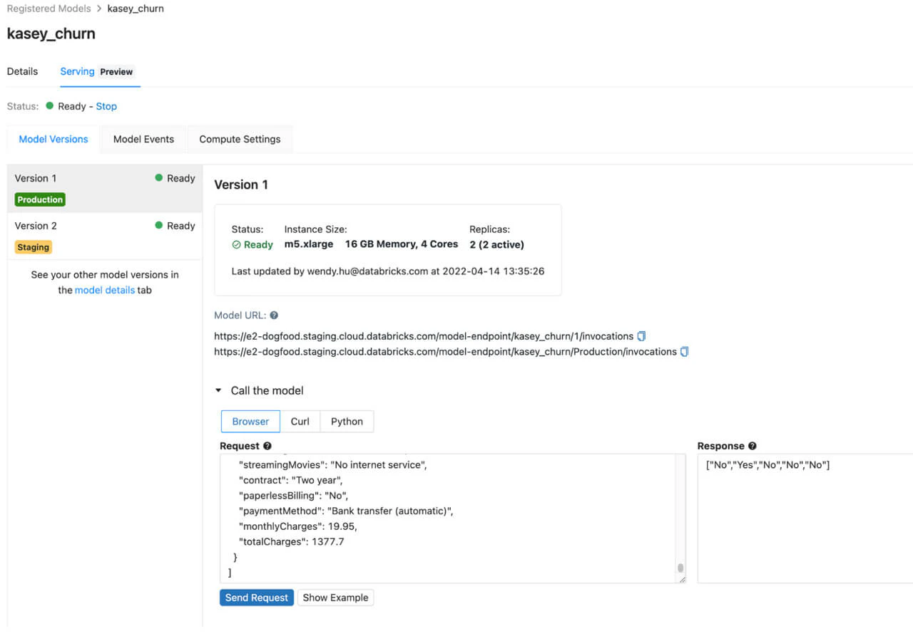 ご自身のプロダクションアプリケーションにおけるリアルタイム推論のために、サーバレスモデルエンドポイントにモデルをデプロイします。サーバレスモデルエンドポイントは、UIあるいはAPI経由でセットアップ、設定できる高可用性、低レーテンシーのRESTエンドポイントです。ユーザーは、モデルのスループットをコントロールしたり、予測可能なトラフィックのユースケースにおいて、オートスケーリングをカスタマイズすることができ、0台にまでオートスケーリングすることで、チームはコストを削減することができます。また、サーバレスエンドポイントにはビルトインの観測機能が備わっているので、モデルサービングをモニタリングすることができます。もはや、データサイエンスチームはMLモデルを提供するために、自分でkubernetesのインフラストラクチャを構築、運用する必要はありません。ゲーテッドパブリックプレビューが開始した際に連絡が必要であれば、サインアップしてください。