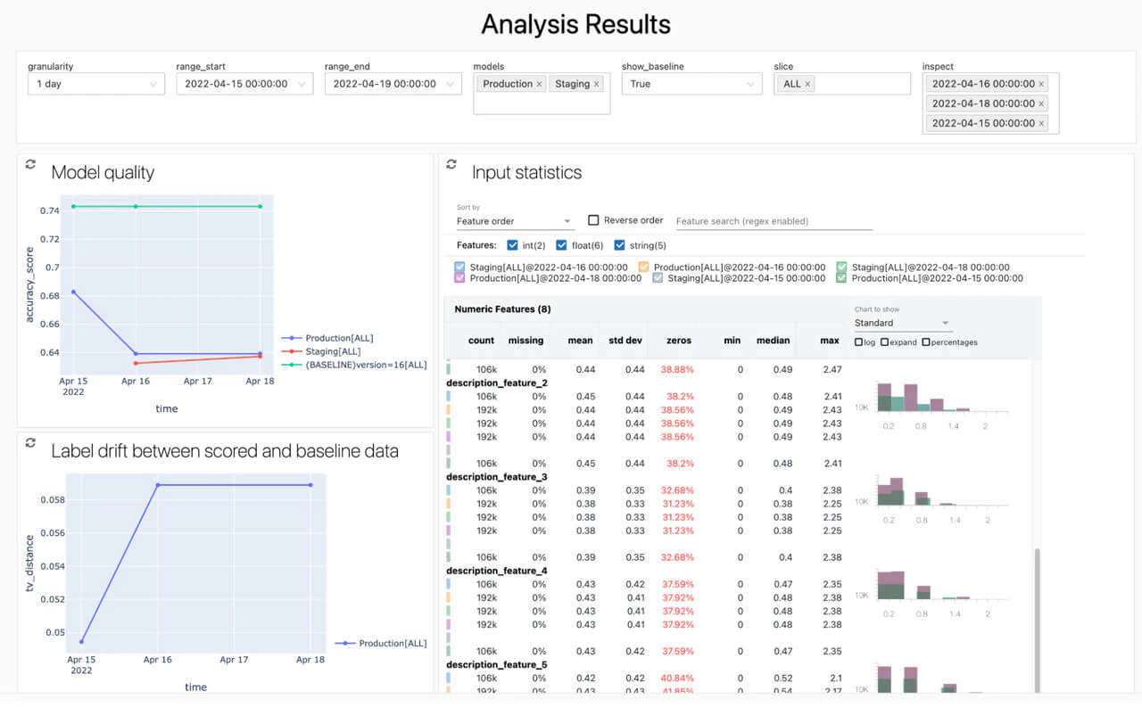 自動生成されるダッシュボードとアラートを用いて、デプロイされたモデルと集中管理された場所に格納される関連データをモニタリング