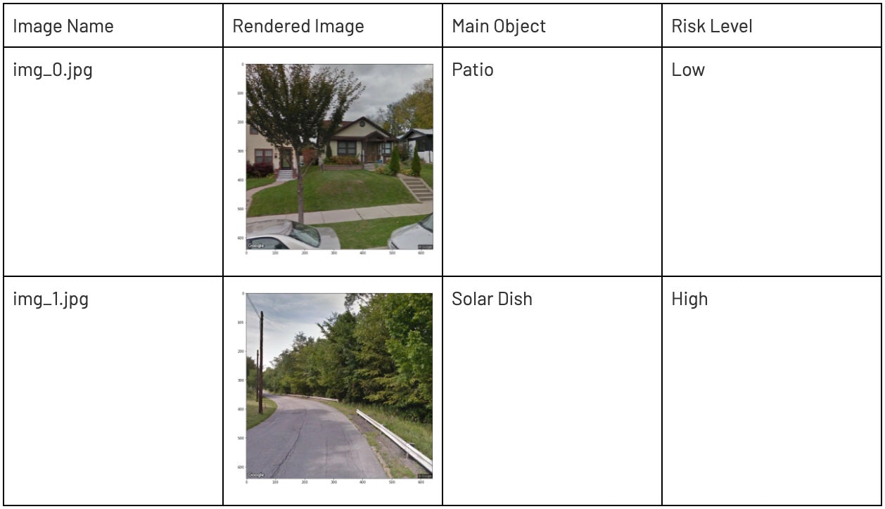 要約を進めるに従い、いくつかの興味深いカテゴリーが見えてくることに気づきました。以下のようにブレークダウンを行うことで、住居として検知されるだろうと期待するパティオ、モバイルホーム、モータースクーターのような明確なラベルがある一方、CVモデルはある画像の周辺オブジェクトから「太陽光パネル」とラベルをつけています(注意:カスタム画像でトレーニングしていないオープンソースモデルに限定しているので、太陽光パネルというラベルは正確ではありません)。画像に対してさらに分析を行うために、ドリルダウンを行うとすぐに以下のことがわかりました。