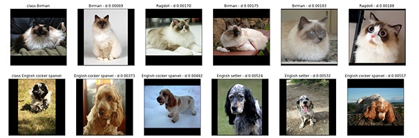 - 類似性モデル(similarity models): 大コボなサンプルコーパス内の同じオブジェクトを表現する画像のような類似するサンプルを検索し、クラスタリングすることを可能とするエンべディングを出力します。例えば上に示したように、わずからデータセットクラスに対するトレーニングだけで、Oxford IIIT Pet Datasetの未知の猫、犬の中から類似するものを検索、クラスタリングするための類似性モデルをトレーニングすることができます。ご自身で類似性モデルをトレーニングしたいのであれば、こちらのノートブックをご覧ください。