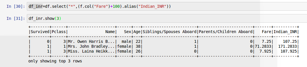 例えば、Fairを70倍してUSドルからインドルピーに変換し、カラム名をFare_INDにするものとします。