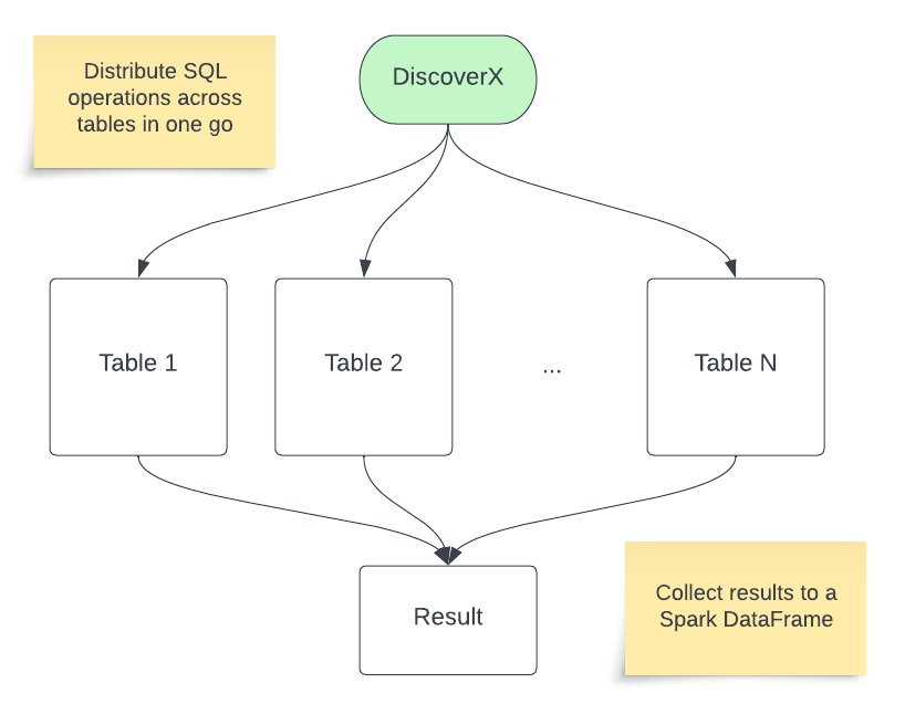 DiscoverXを用いることで、複数テーブルに対するスキャンやSQLの適用を一度に行うことができます。
