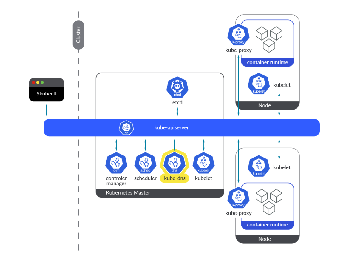 kubedns: Kubernetes用のSkyDNSの実装です。Kubernetesクラスター内のDNS解決を担当します。KubernetesのAPIを監視し、適切なDNSレコードを提供します。 -