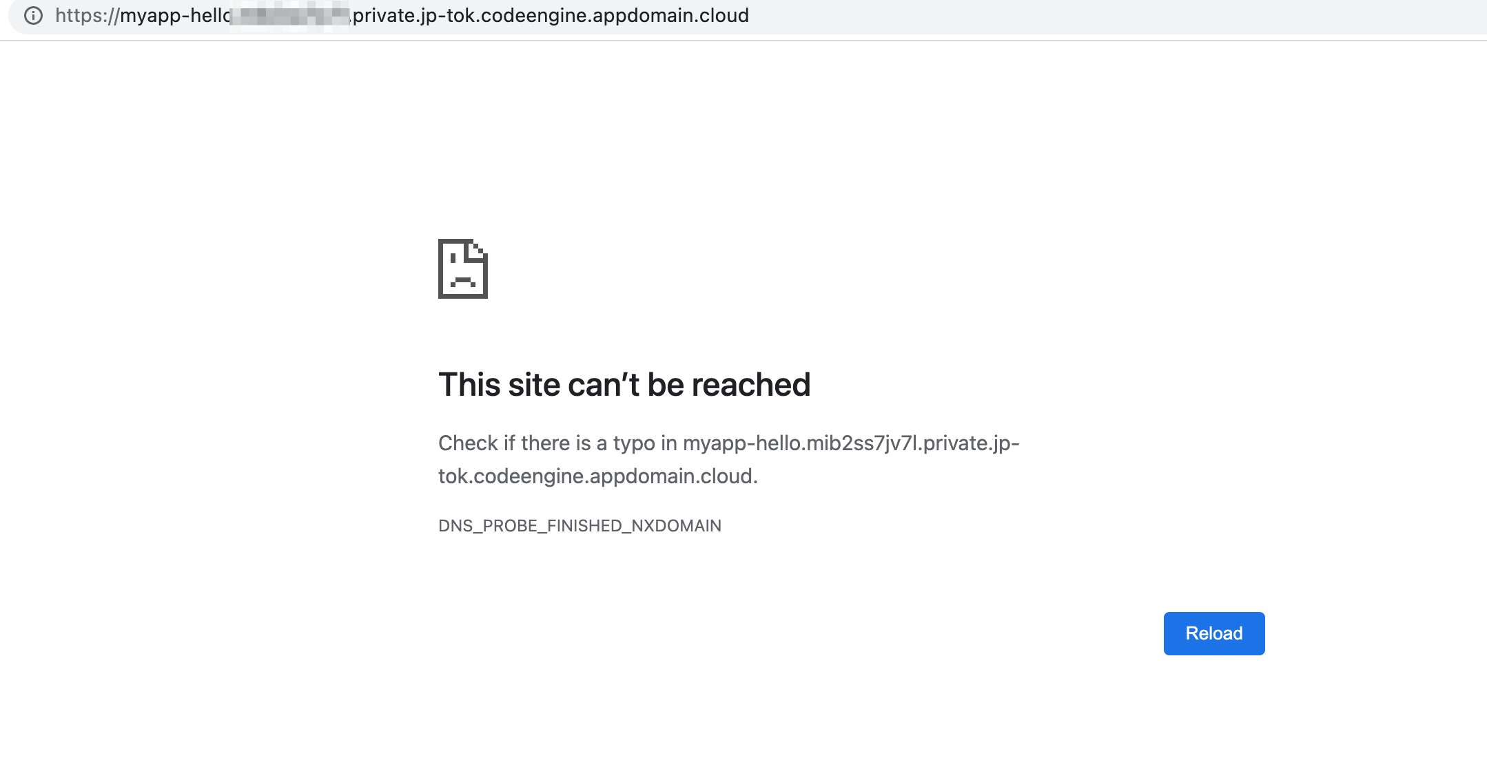 curl: (6) Could not resolve host: myapp-hello-xxxxxxxxx.private.jp-tok.codeengine.appdomain.cloud