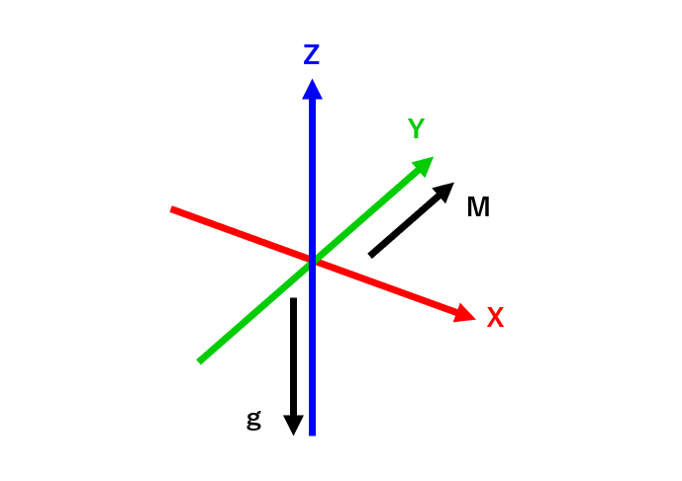 z軸を上向き、重力方向をz軸の反対方向、地磁気方向 (北) をy軸と同一方向に設定。