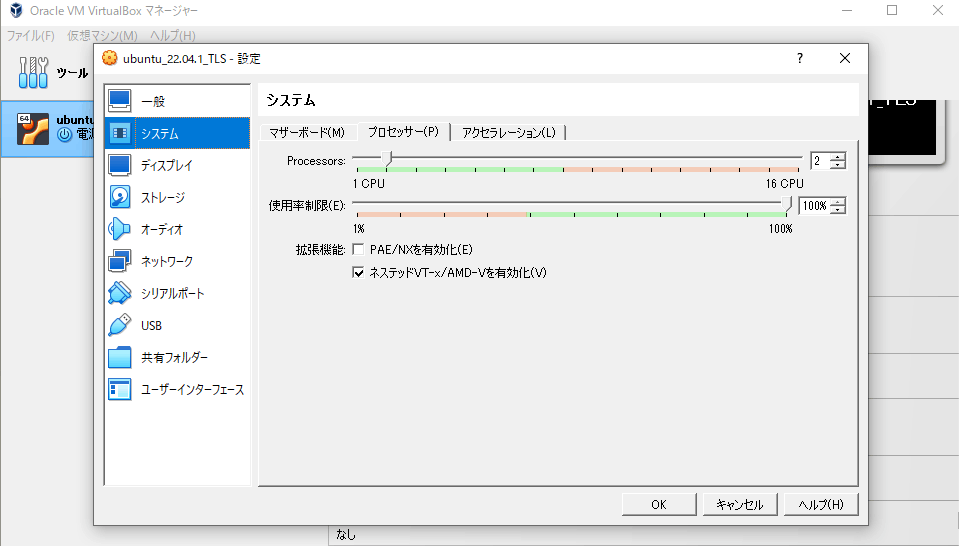 これをするためには,VirtualBoxの設定で「ネステッドVT-x/AMD-V」を有効化する必要がある.