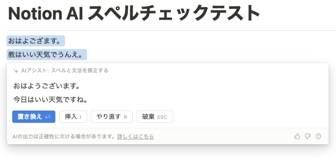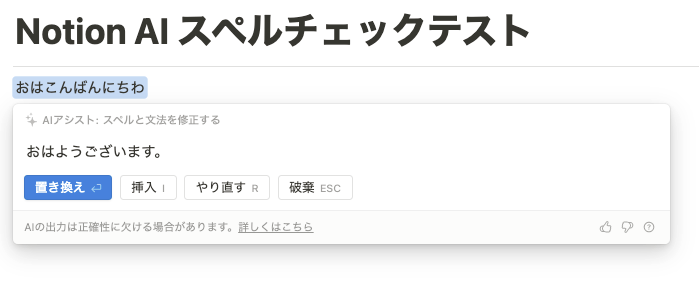 Notion AIには、スペルチェックと文法修正機能が組み込まれています。
