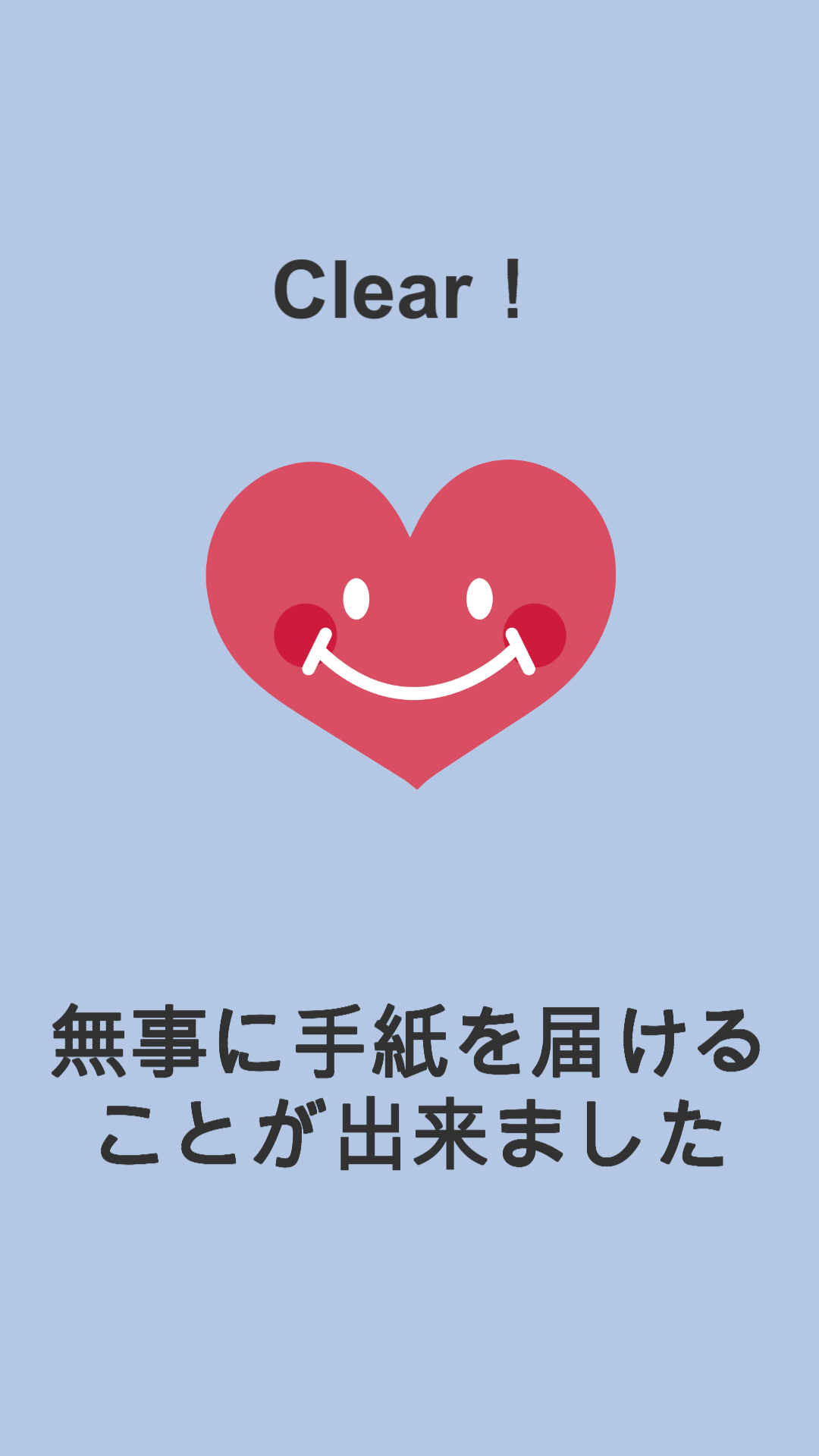 画面をタップするとピョンピョンと上に跳ねて行きます。無事にポストまで到達するとクリア演出が。ハートはクルクルと回転します。