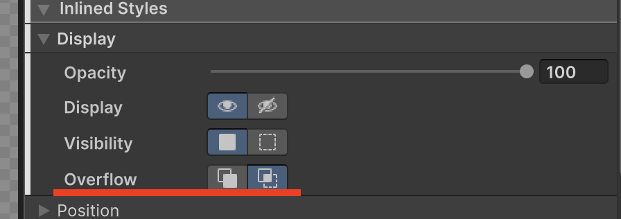 その後、InspectorからOverflowをhidden(右側の選択肢)に変更します