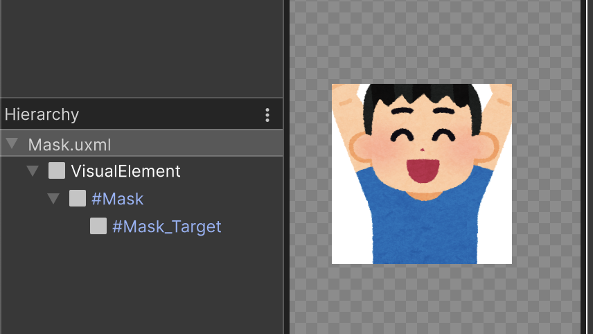 上記のようなUXMLになっていれば、子要素に矩形のマスクがかかっているはずです