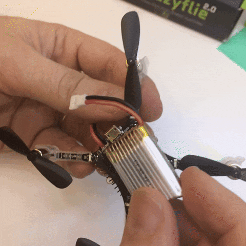 コネクタピンの間にLipoバッテリーを配置し、バッテリーホルダーを差し込みます。