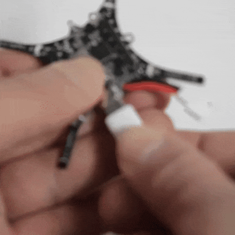- プロペラを取り付けます。それぞれ適切な場所、向きがあるため注意してください。下の写真のように刻印が上から見えていると大丈夫です。