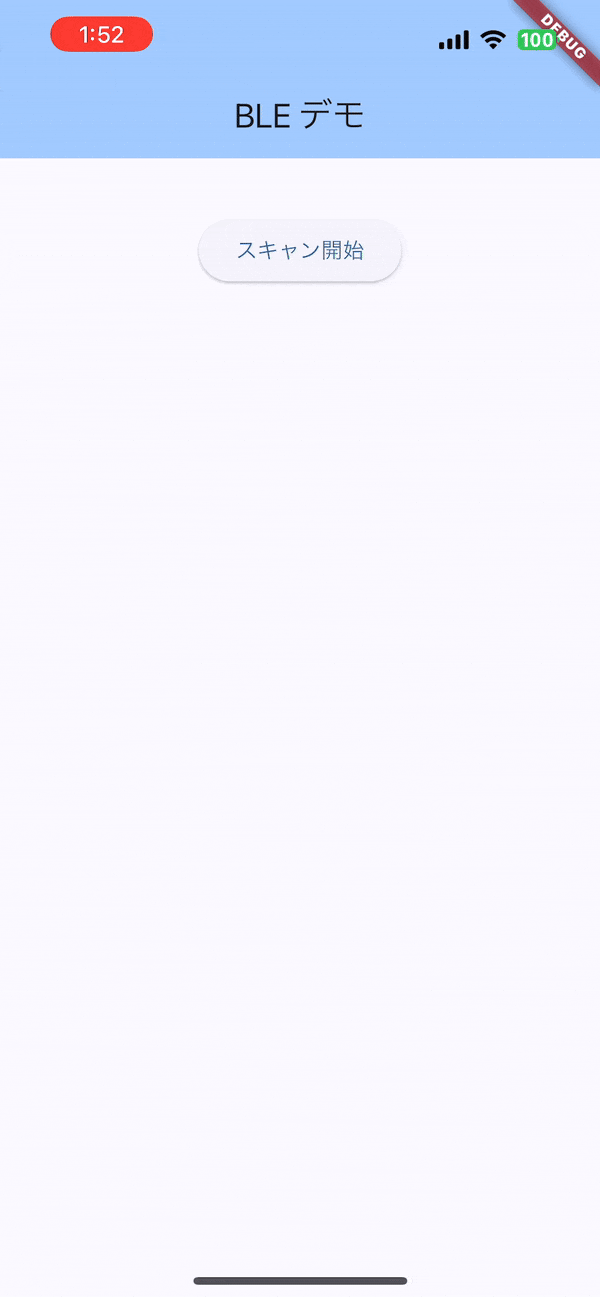 今回のプログラムは、BLE通信の基本機能を検証するためのシンプルな実装に留めています。概要としては、スマートフォン端末をCentral機器として動作させ、以下の機能を実装しました。